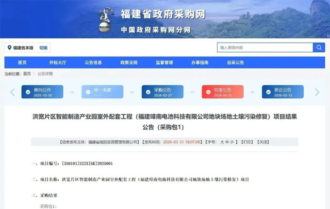 近日,江苏大地益源环境修复有限公司在土壤修复领域再传捷报,成功中标“洪宽片区智能制造产业园室外配套工程(福建璋南电池科技有限公司地块场地土壤污染修复)项目”。该项目位于福建省福清市,旨在对原福建璋南电...